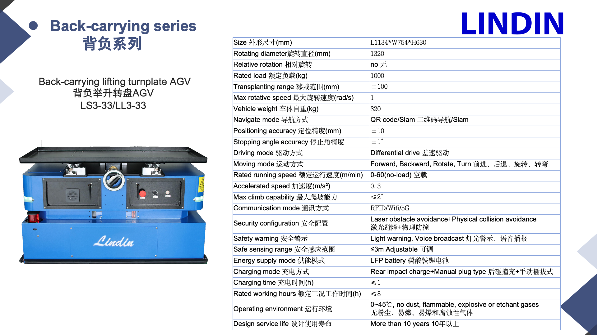 Back-carrying lifting turnplate AGV LS3-33