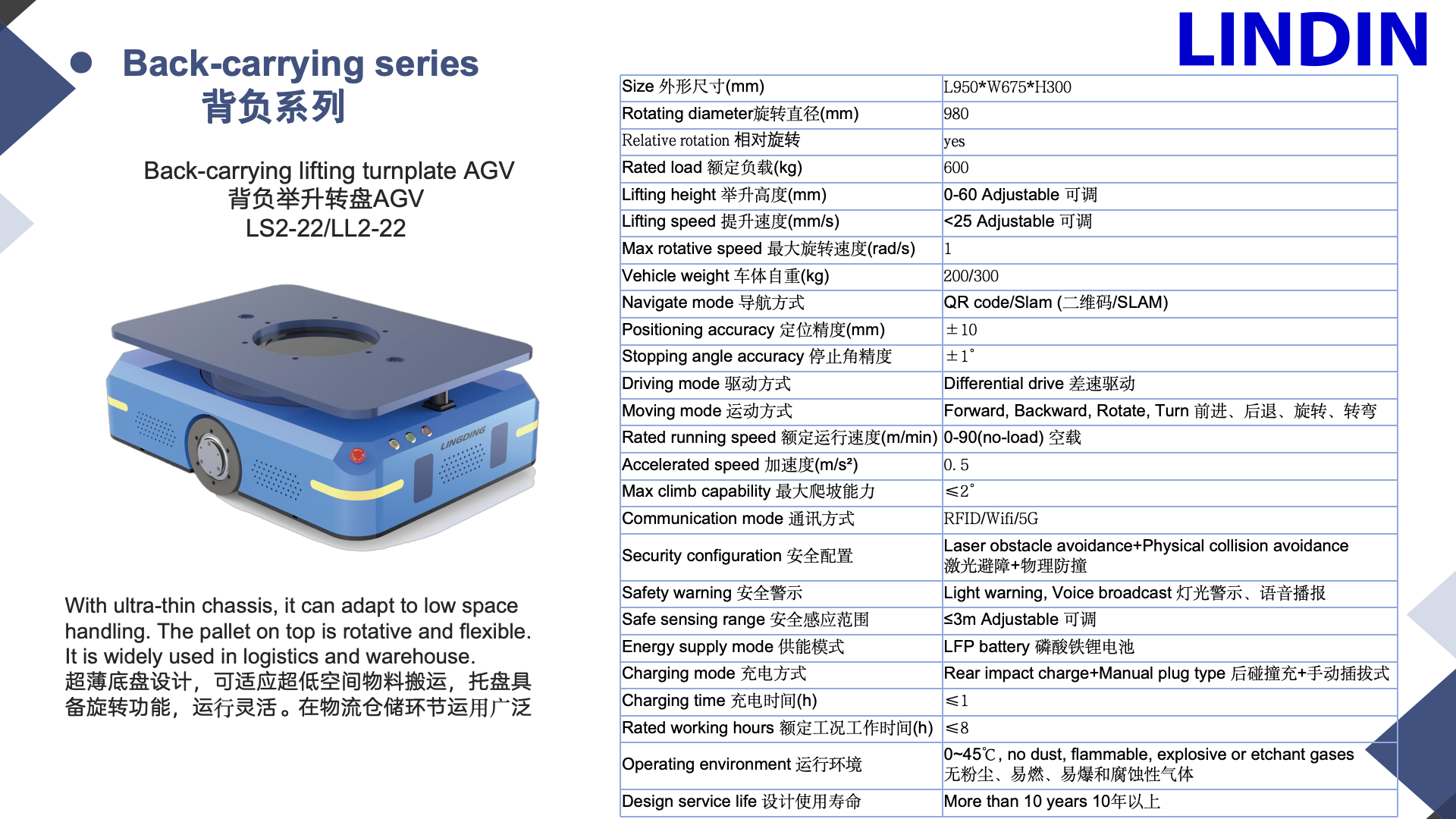 Back-carrying lifting turnplate AGV LS2-22